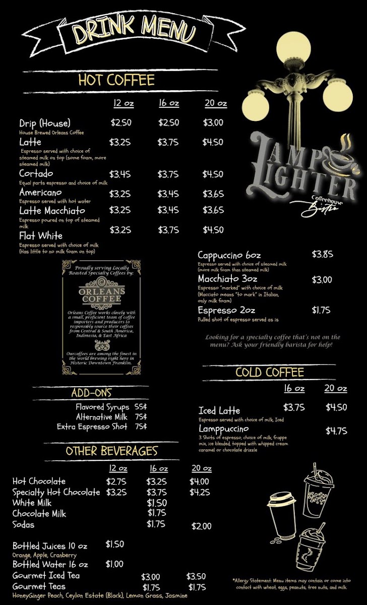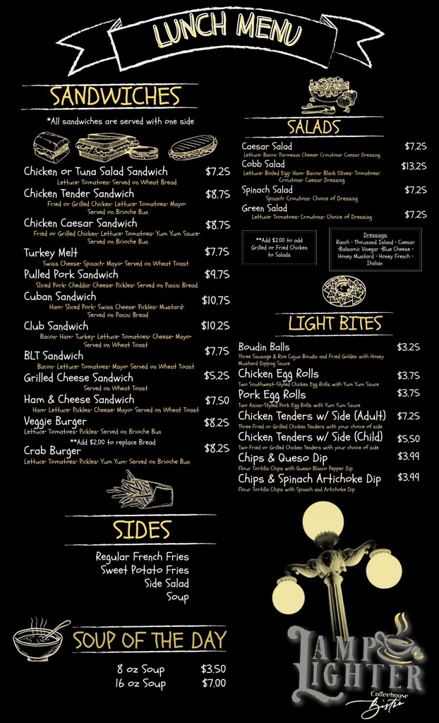 Introducing the menu at The Lamp Lighter Coffeehouse & Bistro is an experience filled with delightful culinary offerings. Nestled in the heart of Franklin, LA, this cozy eatery captivates both locals and visitors alike with its welcoming atmosphere and delectable fare.
